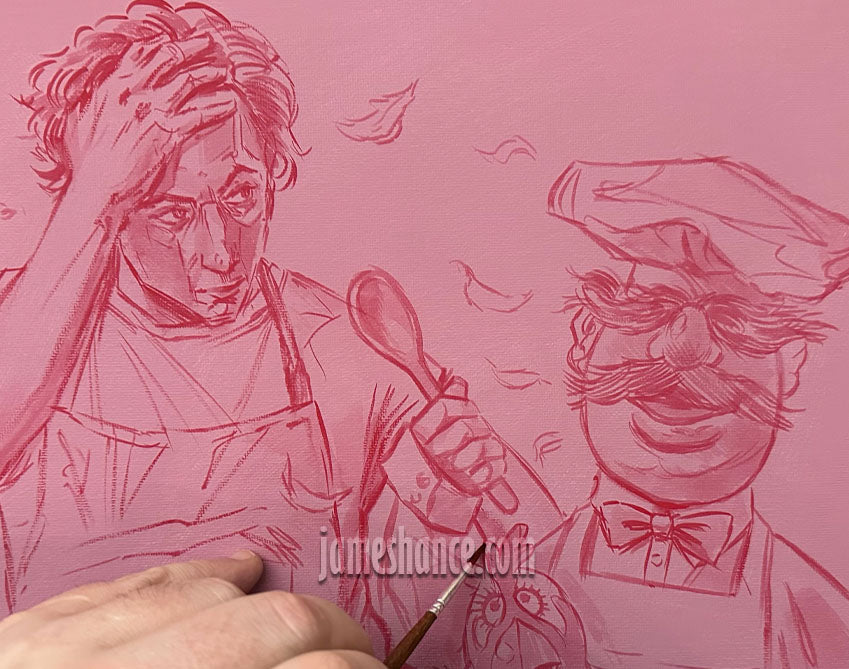 Medium: Gesso / Acrylic Gouache on Canvas Panel in Wooden Frame